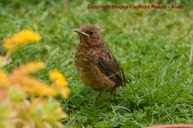 Le jeune merle possède sa coloration normale. Il n'est pas dépigmenté.